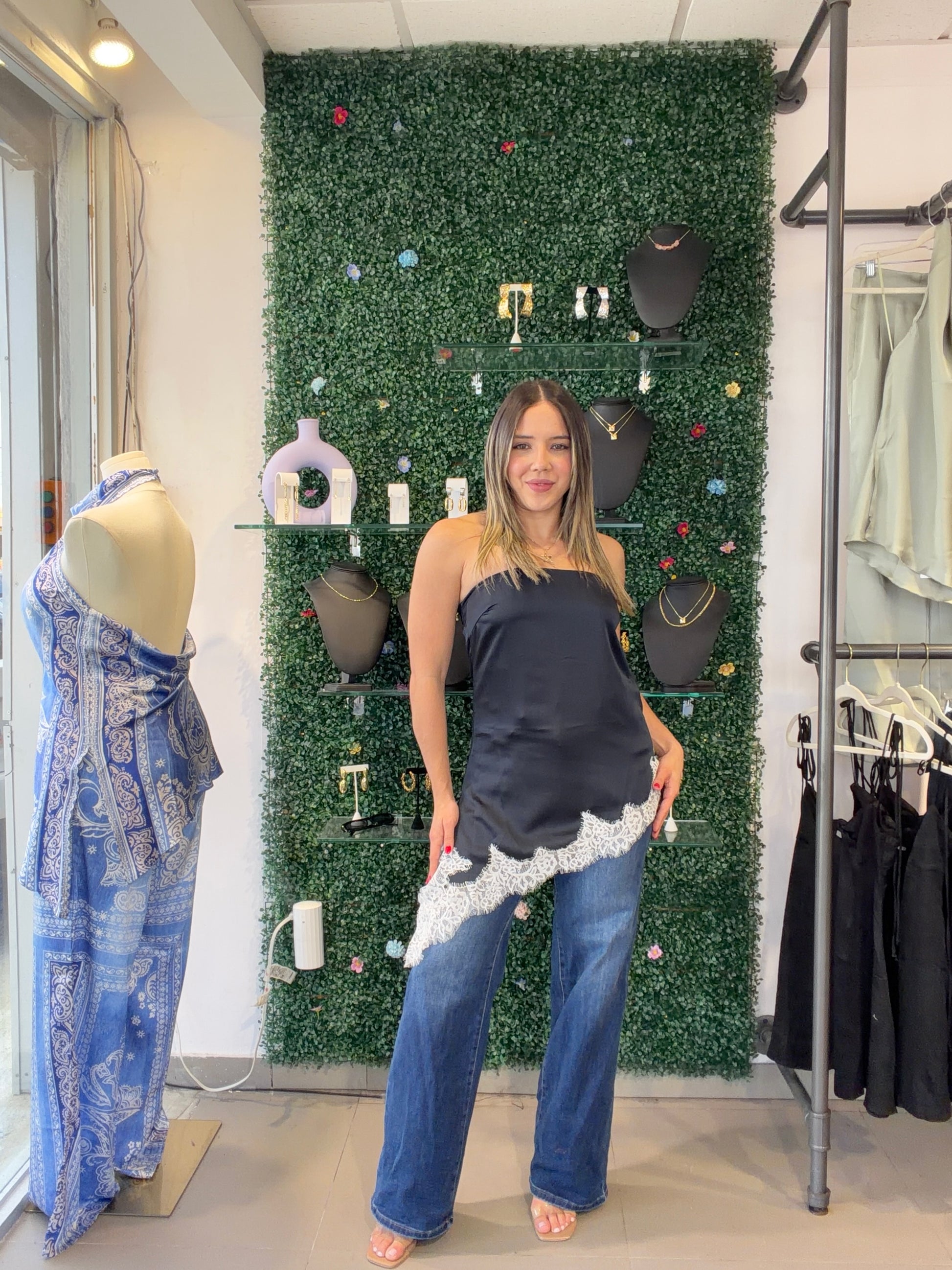 Navy Strapless Top